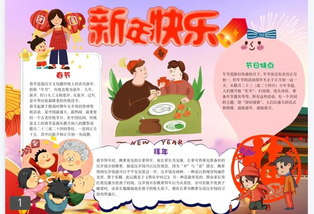 1.本文内容分享【26年】40款马年春节手抄报及线稿