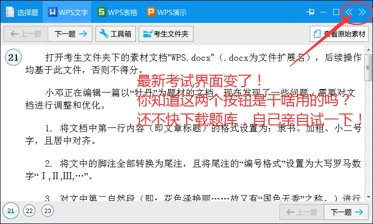 反映最新考试系统界面变化: