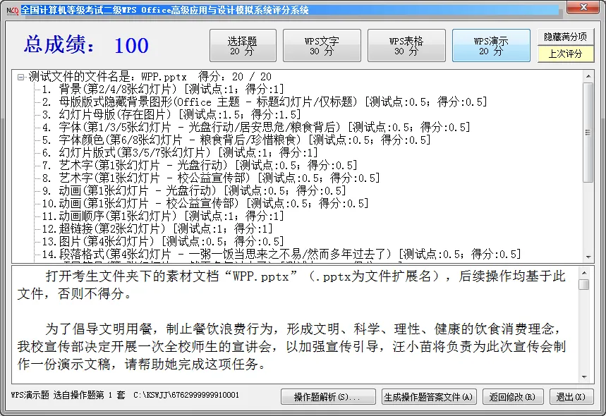 所以用WPS的同学,需要同时安装MS Office(2010或2016)才能评分了。不然的话,只能看题、做题、评选择题的分,不能评操作题的分了。