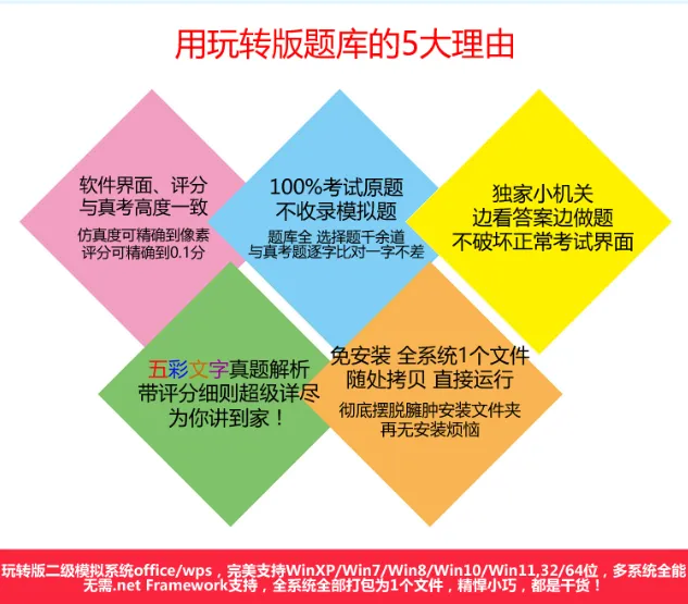 玩转题库不需安装,不需卸载,这与市面上多数其他题库不同,方便大家使用:告别臃肿安装包和繁琐安装过程,全部题库仅有一个文件,随处拷贝,双击运行,使用非常方便!