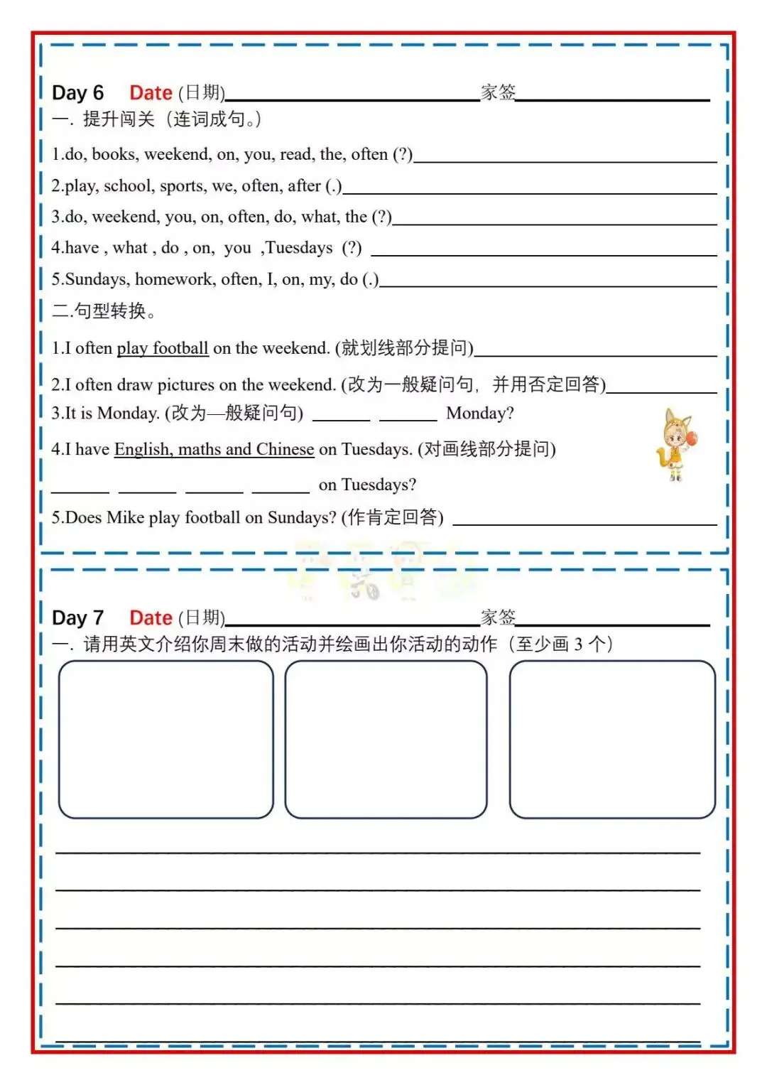 寒假作业《五年级下册英语人教PEP版》高清电子版可下载打印