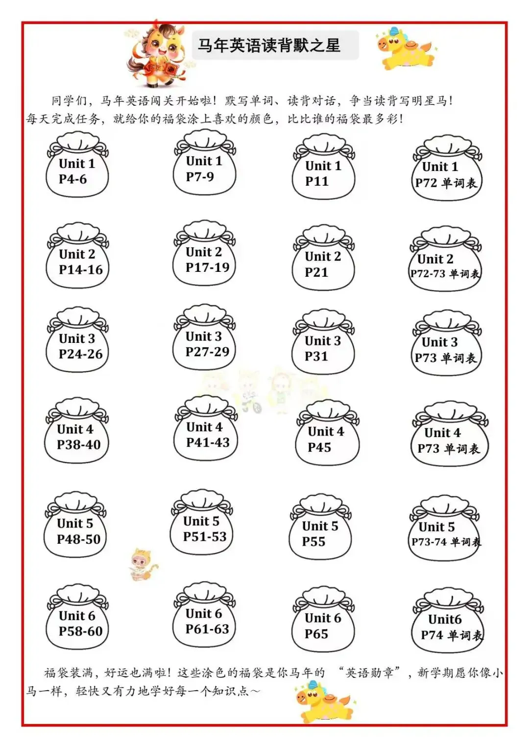 今日分享:寒假已至,年味渐浓。为落实“双减”,让英语学习更有趣、更生活化,五年级英语组特别设计PEP版寒假特色作业。以巩固基础、口语表达、动手实践、文化融合为目标,让孩子在玩中学、学中用,轻松提升英语能力,度过充实又快乐的假期!