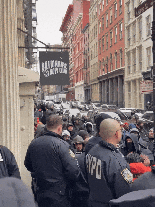 去年12月初率先登陆纽约Billionaire Boys Club首发,结果当天纽约BBC门口直接爆满,现场一片混乱。甚至惊动了NYPD出警,最终发售被叫停…