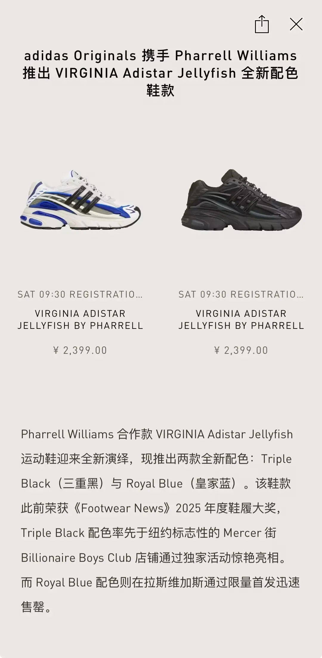 App登记!阿迪「黑水母」「蓝水母」国区释放,市价5k+一双!