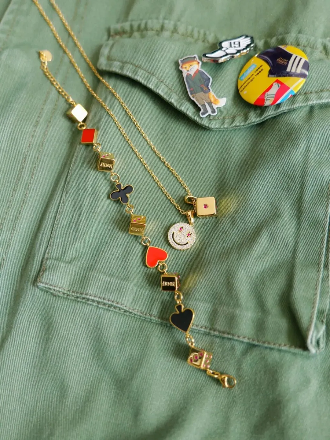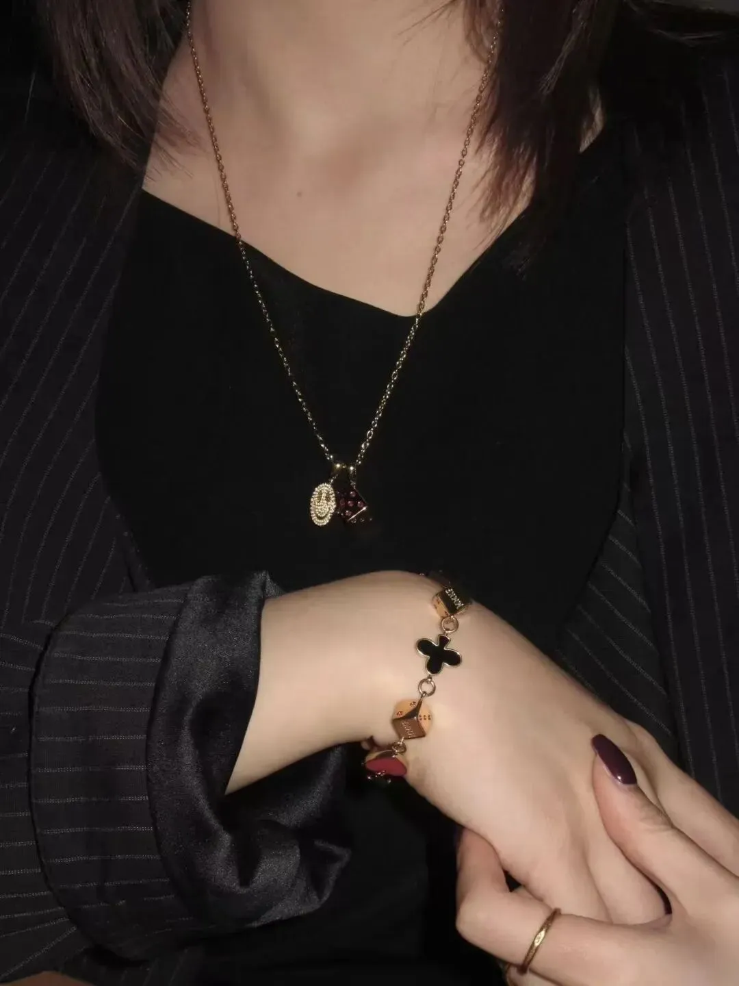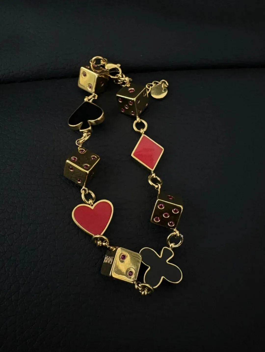 逢赌必胜,限量「🃏同花顺 Flush🔥」珐琅手链,现货发售了!黑红梅方「珐琅工艺」、表层18K金色电镀、骰子点数为5A彩钻镶嵌、金属钛钢材质、精雕抛光,链长23cm可调,赚钱不交朋友!