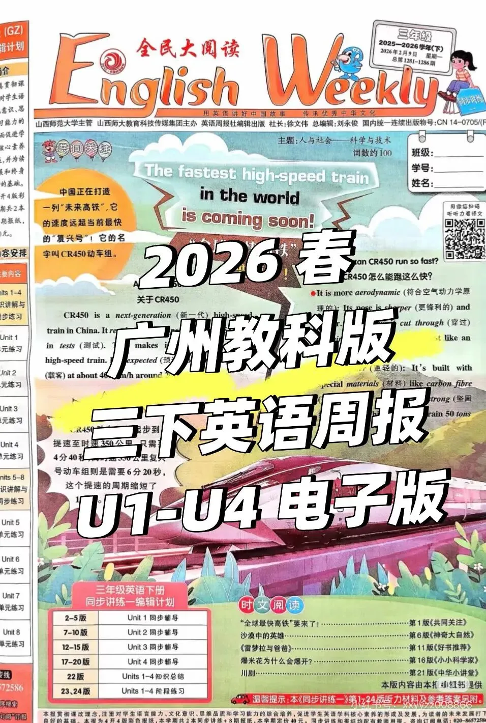📒📒2026春 广州专版新三下英语周报电子版来啦,包含单元重难点总结➕单元同步练习➕单元综合拓展➕单元时文阅读➕参考答案👍