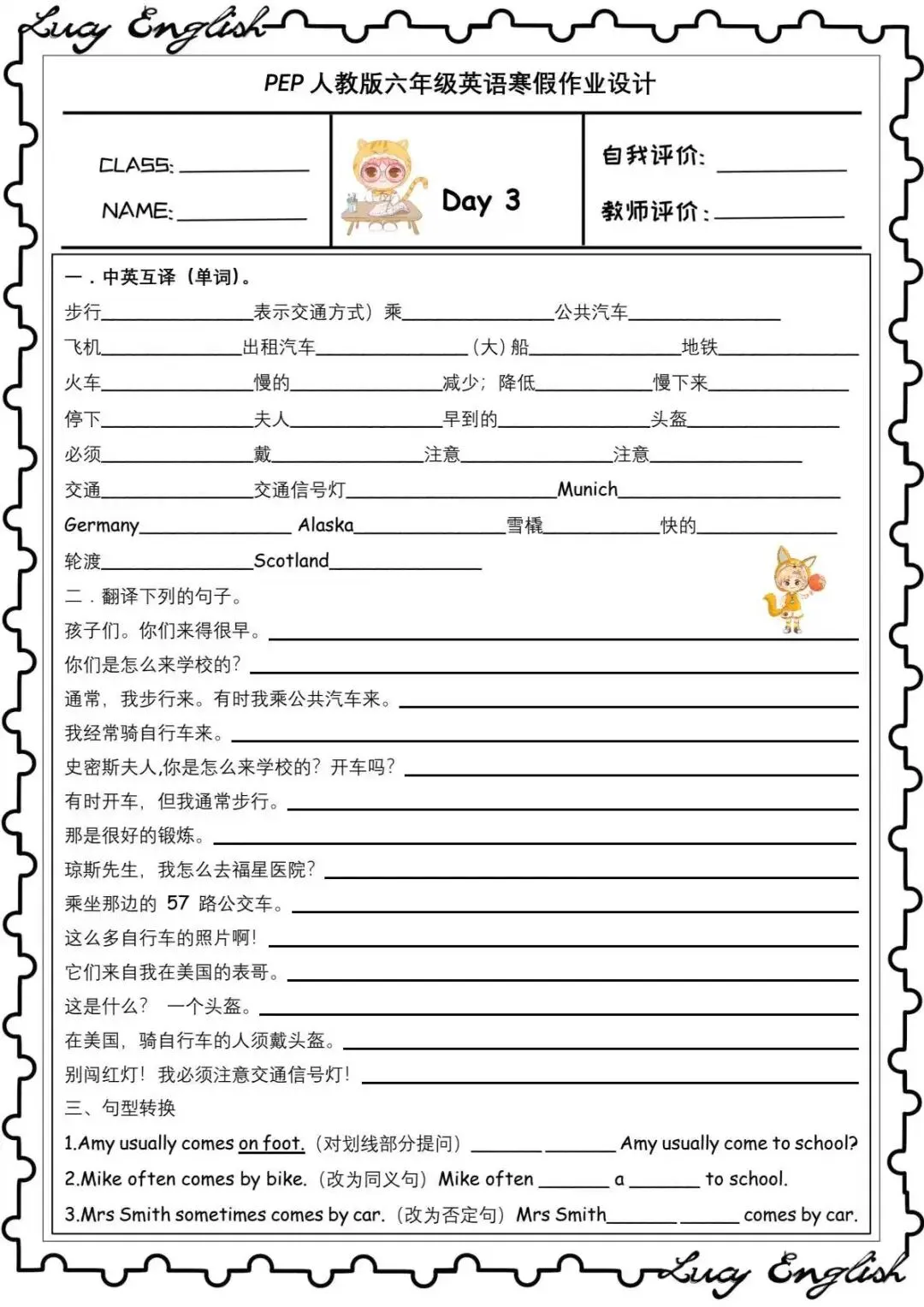 寒假作业《六年级下册英语人教PEP版》高清电子版可下载打印