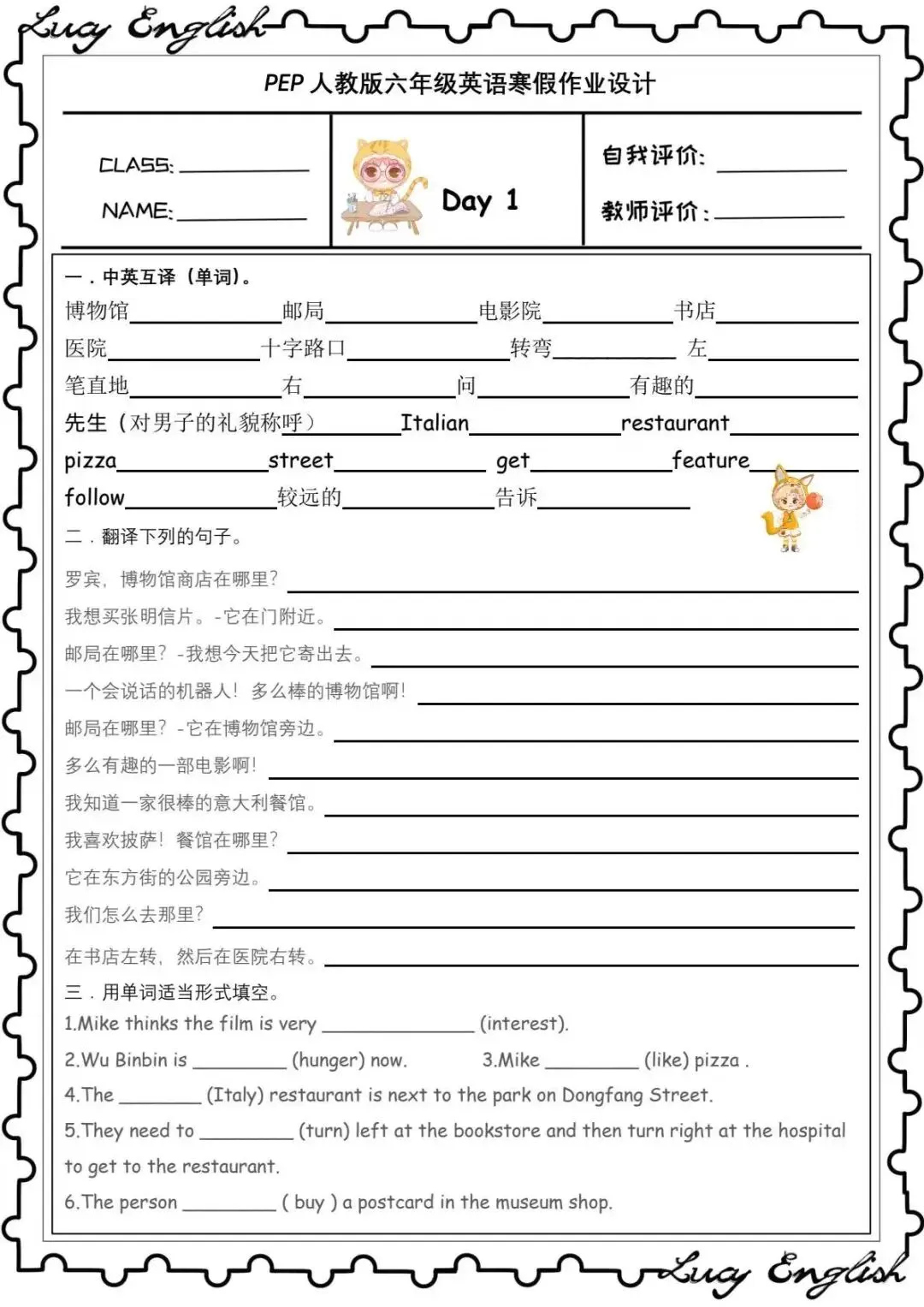 今日分享:寒假已至,年味渐浓。为落实“双减”,让英语学习更有趣、更生活化,六年级英语组特别设计PEP版寒假特色作业。以巩固基础、口语表达、动手实践、文化融合为目标,让孩子在玩中学、学中用,轻松提升英语能力,度过充实又快乐的假期!
