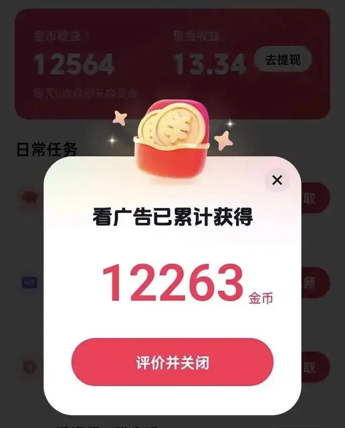 比如我第一次下载红果短剧,看一段广告视频发1000金币,到第二次提现周期时就变成200金币,如果到了第三次提现周期可能就几十个金币了。