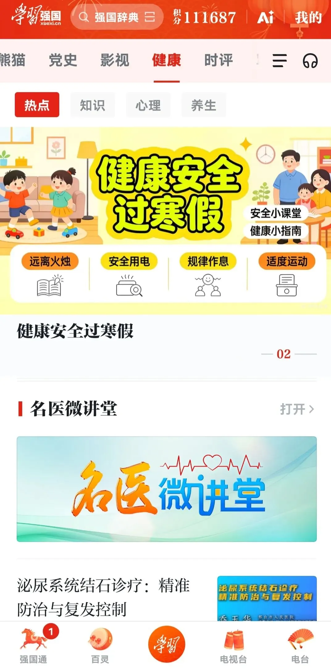 健康保障,有强国医生!强国健康,强国运动,应急安全,名医微讲堂……免费,免费,应有尽有!