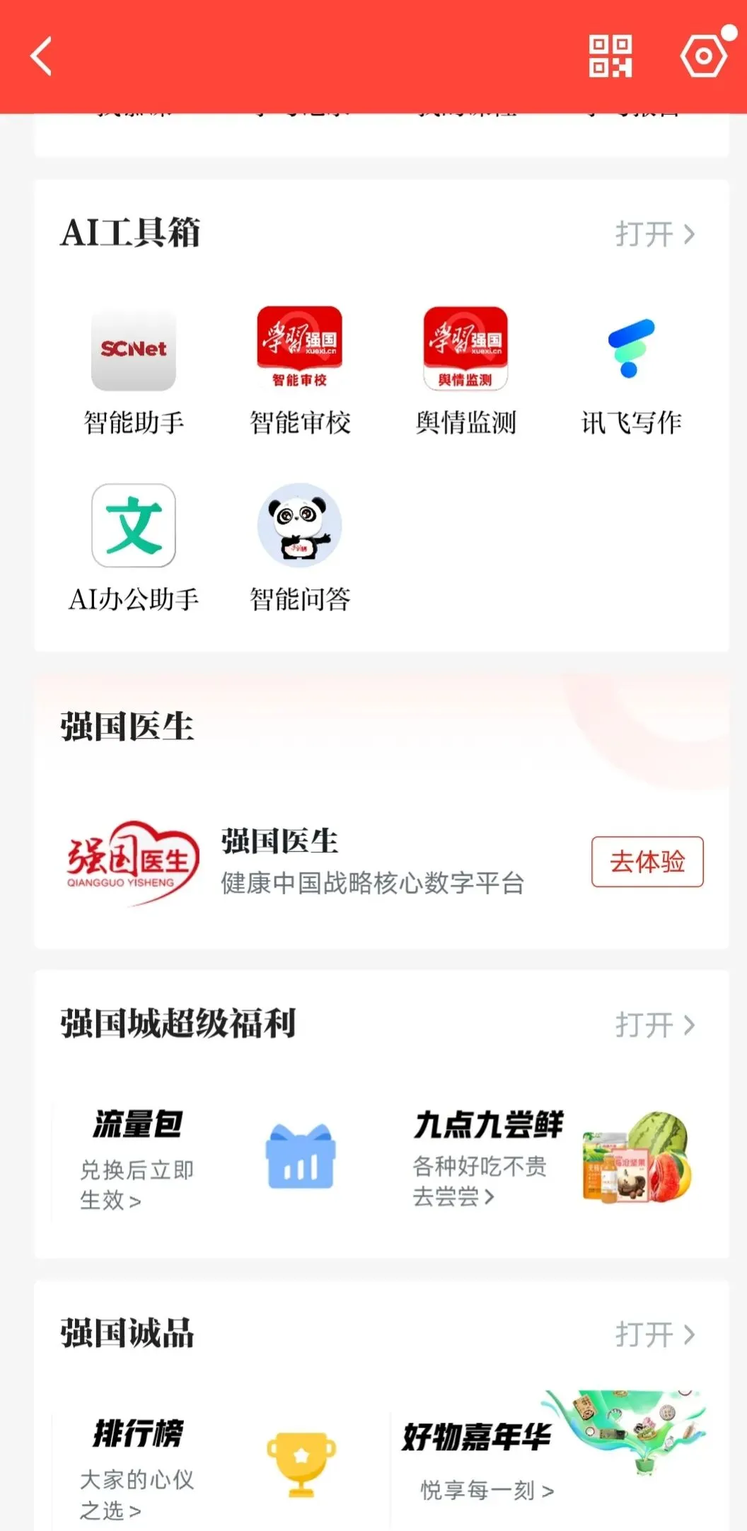 最强APP学习强国,学理论,看新闻,学知识,购买农产品,AI工具箱,强国诚品……