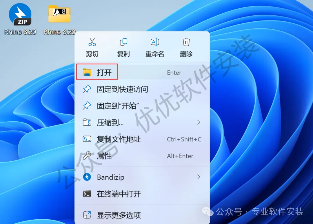 14、回到桌面,右键桌面上的【Rhino 8软件图标】,点击【打开】
