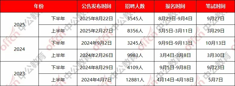 根据往年考试安排来看,公告发布和笔试时间间隔通常为一个月,如果3月28日笔试的话,公告或将2月下旬发布!