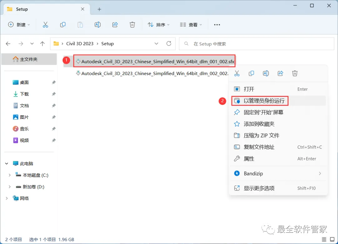 1、下载Civil 3D 2023软件安装包到电脑上,右键选择【解压到Civil 3D 2023\】