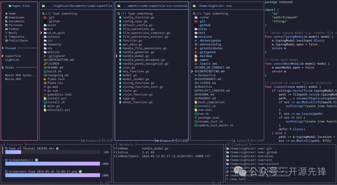 superfile是一个现代且时尚的终端文件管理器,它用Go语言和Bubble Tea框架打造,不仅速度飞快,而且界面简洁美观。简单来说,它就是让你的终端文件管理变得既高效又有趣的神奇工具!无论你是开发者、系统管理员,还是仅仅想在终端里管理文件的用户,Superfile都能成为你的得力助手。