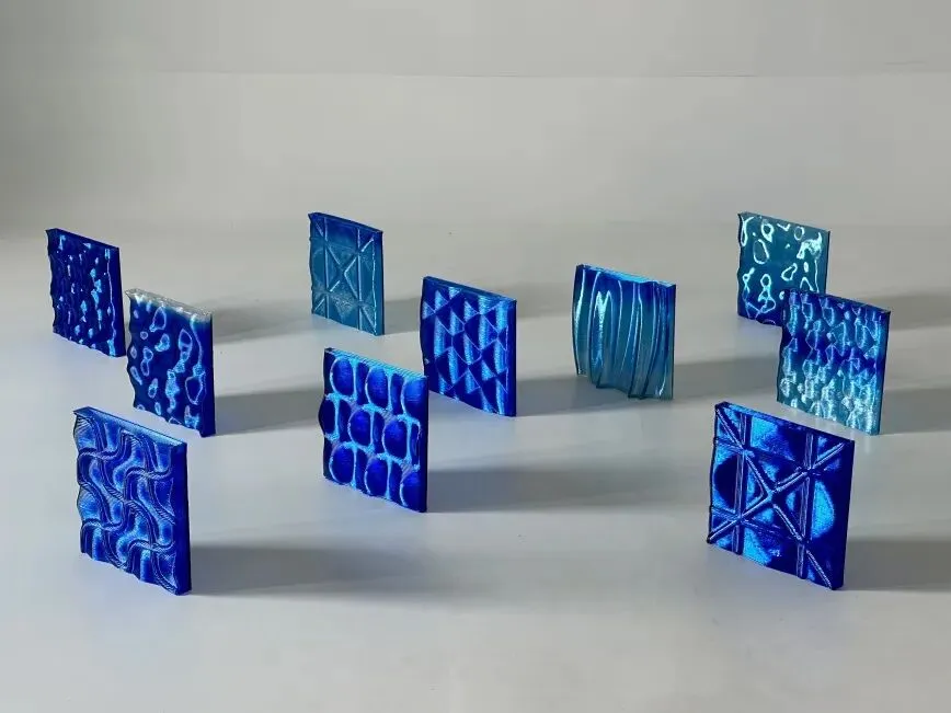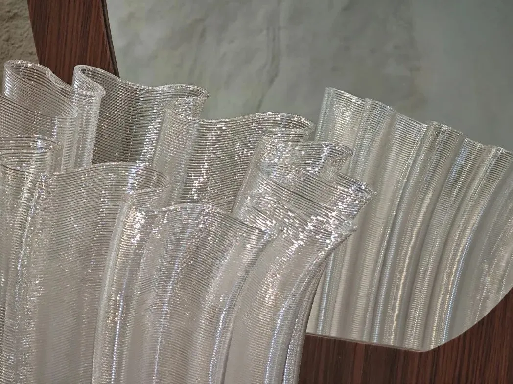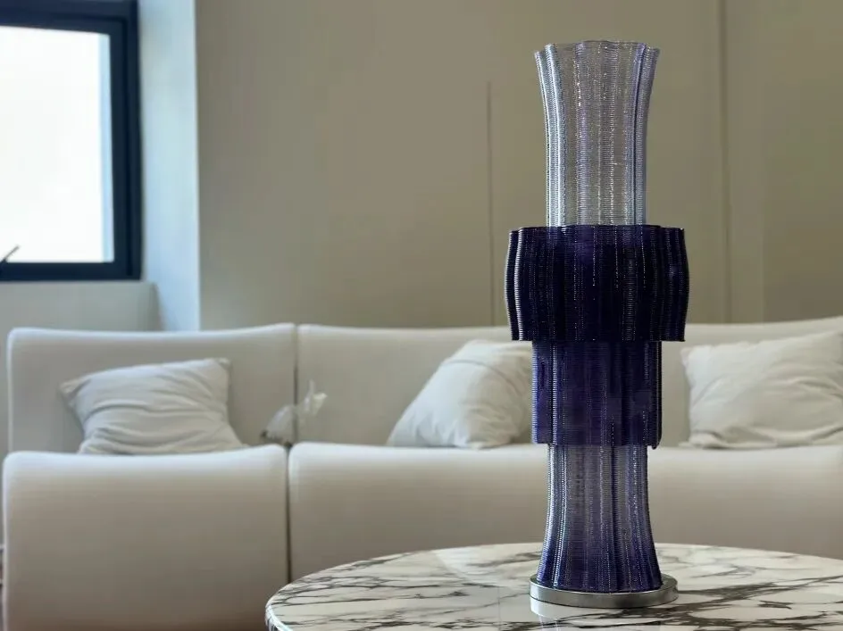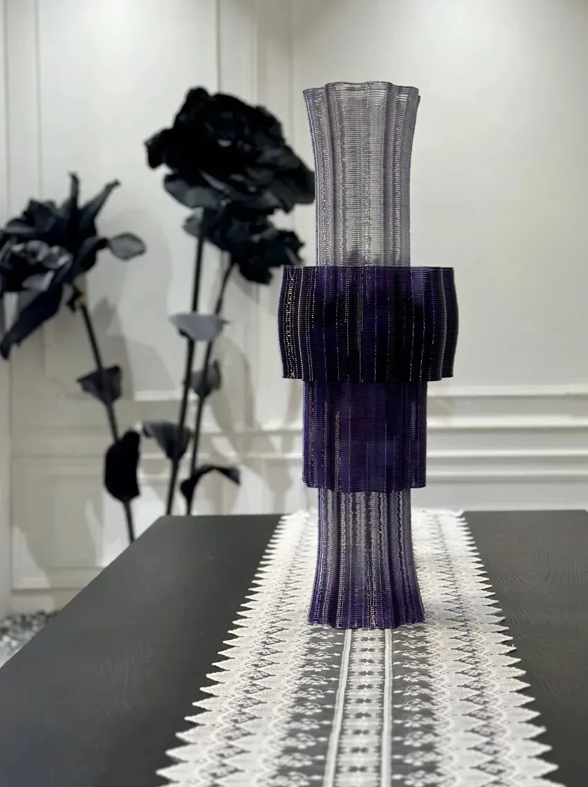 色彩在深浅之间递进变化,高低错落中,呈现出一片正在生长的花境。曲线的重复与叠加,使结构既轻盈又丰盈。花瓣舒展的瞬间,被 3D 打印解构并定格于此。