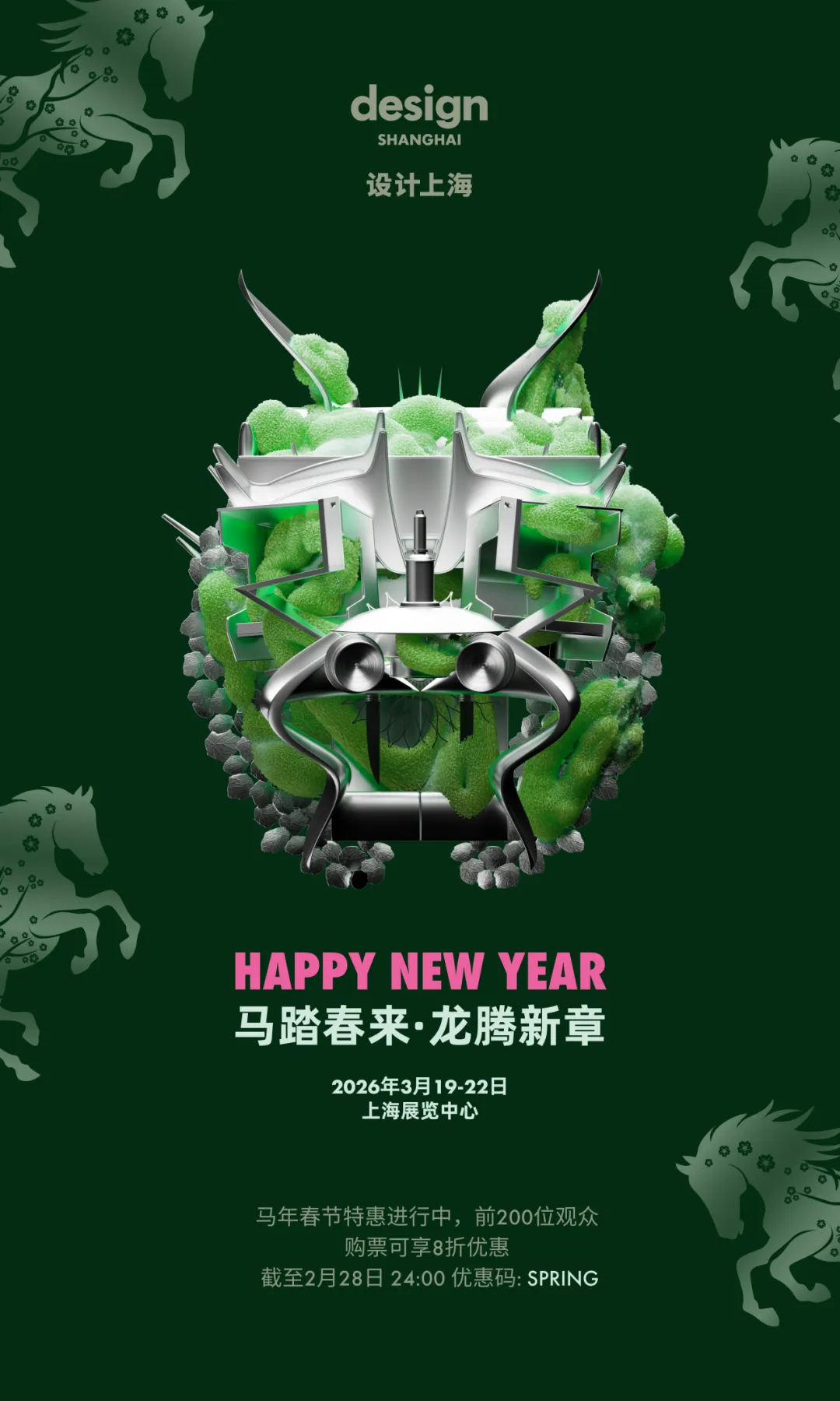2026年3月19日至22日,“设计上海”将于上海展览中心正式启幕。马年春节特惠活动进行中,截至2月28号,前200位观众凭优惠码【SPRING】购票可享8折优惠!灵感共生,与“设计上海”共同开启新年新篇章!