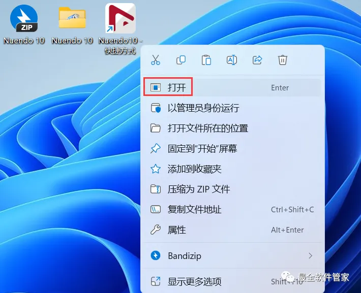 19、回到桌面,右键桌面上的【Nuendo 10软件图标】,点击【打开】