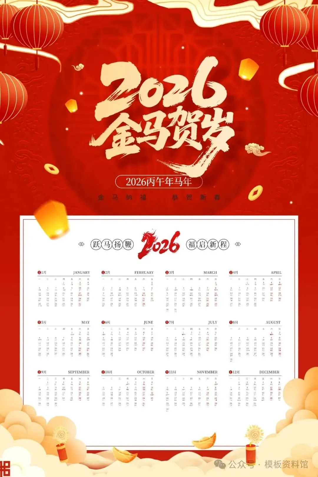 2026马年日历表,高清可打印(附电子版、下载)