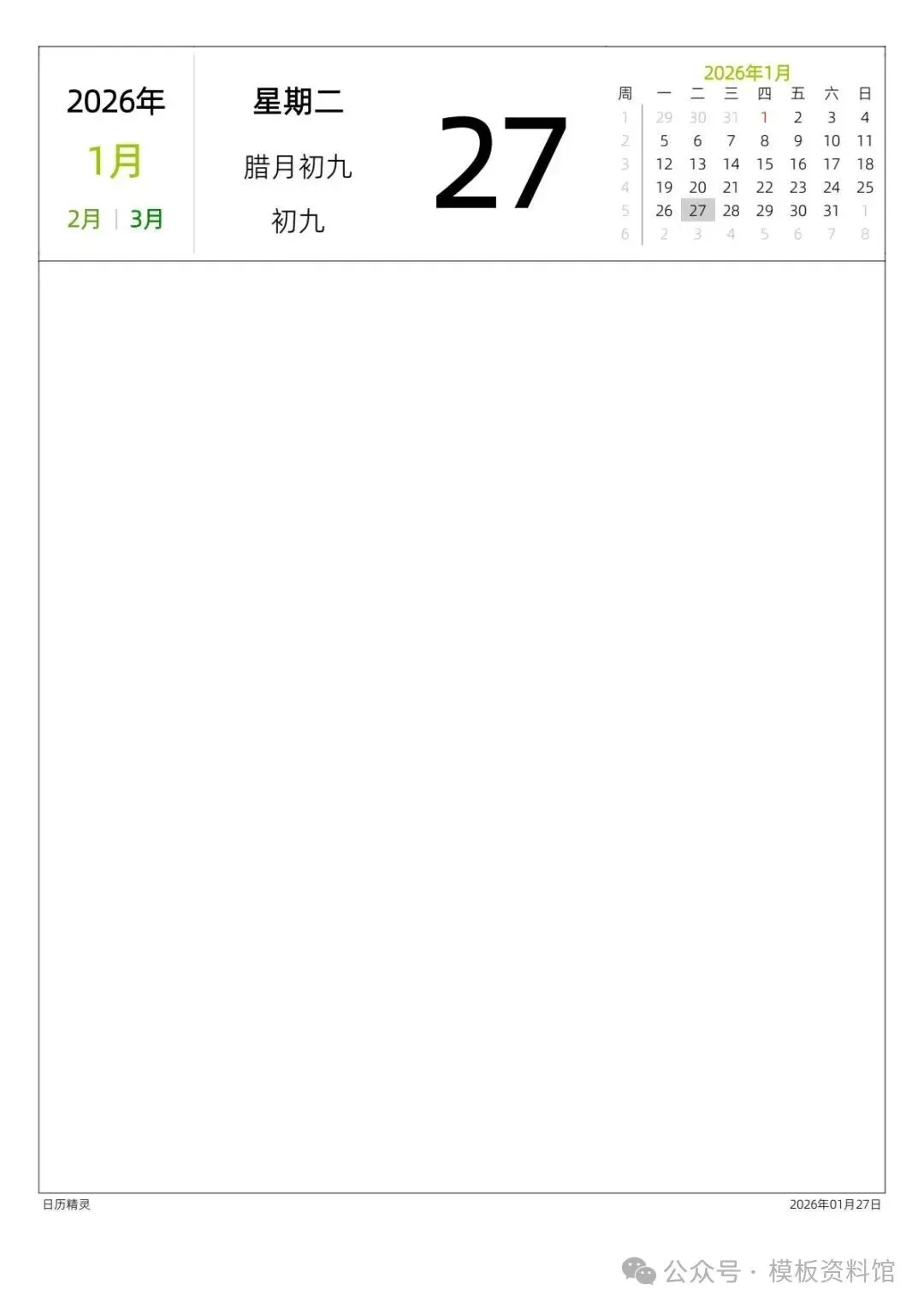 今天分享的是《2026年日历》高清电子版