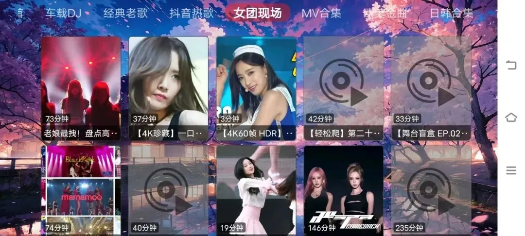 2、国语金曲,粤语歌曲,车载DJ,经典老歌,女团现场,日韩合集,古风歌曲等等,超多分类可以选择!