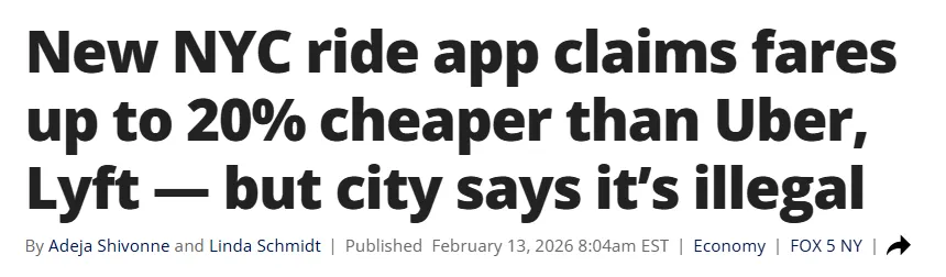 纽约新叫车APP宣称比Uber便宜20%,合法性遭质疑