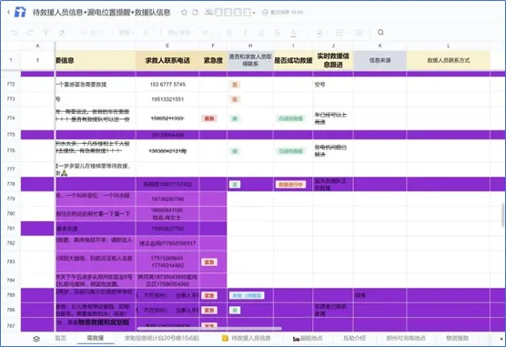 7月20日晚上,河南暴雨灾情已经成为牵动大多数国人心的重大事件。当晚20:57:12,朋友圈里出现了一个名为《待救援人员信息》的共享编辑文档,其后,无数人自发地在上面更新信息。