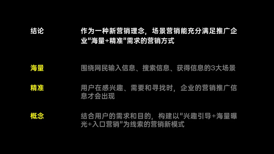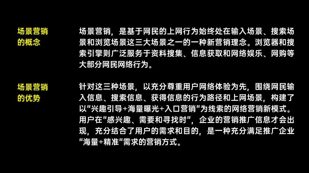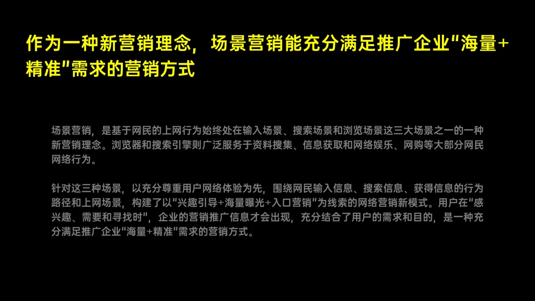 啥意思呢?咱们通过一个实际的例子,来理解一下。比如这样的一段 PPT 内容,讲场景营销有关的东西: