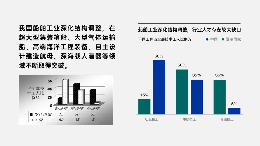 而哪些信息能支撑人才需求大呢?一是多个领域取得了突破,二是,中国与发达国家的技术人才占比的数据: