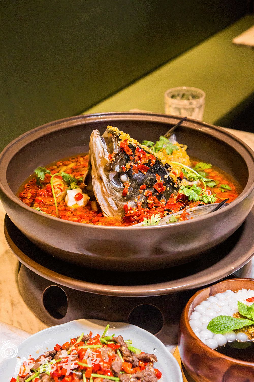 湘菜的做法更多是保证食材的原味,用两种颜色的辣椒调味的古法蒸鱼头,在外观上就很活色生香,鱼头鲜辣到位口感非常鲜嫩。