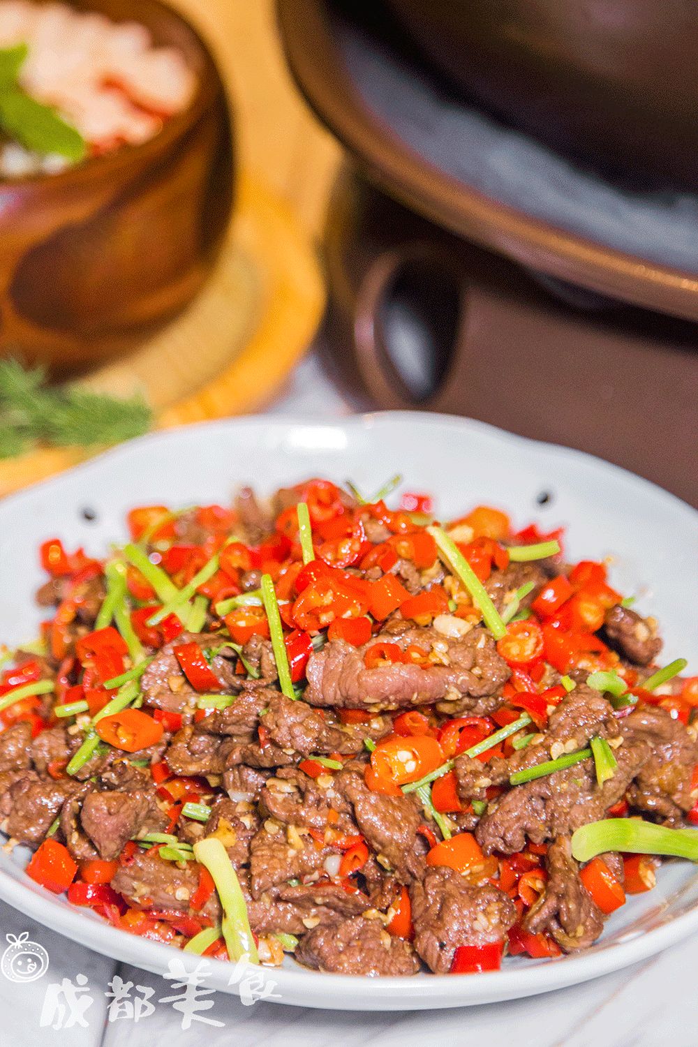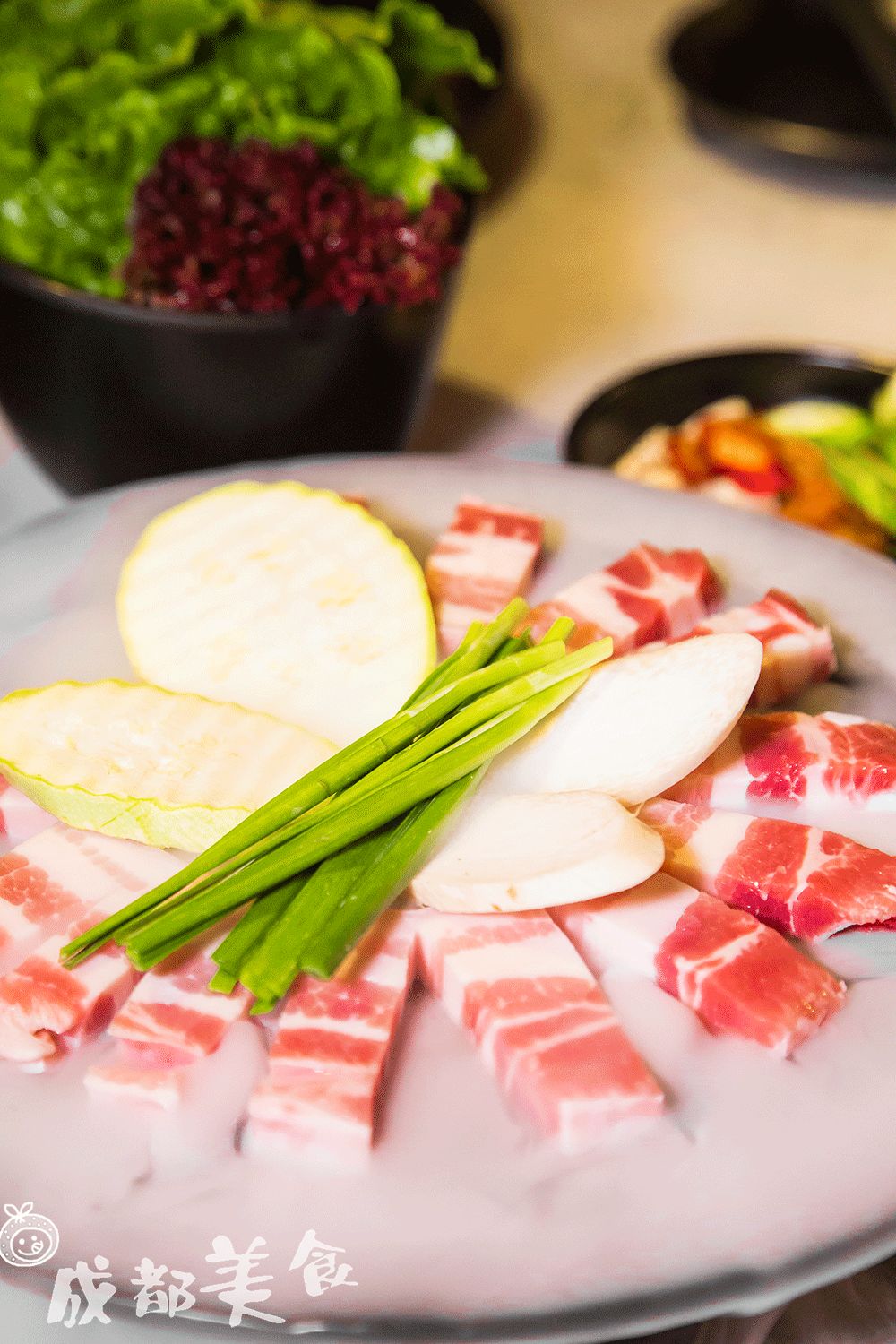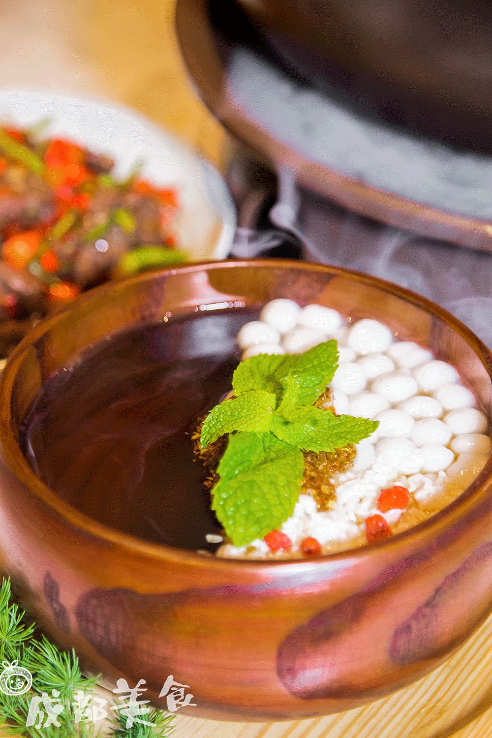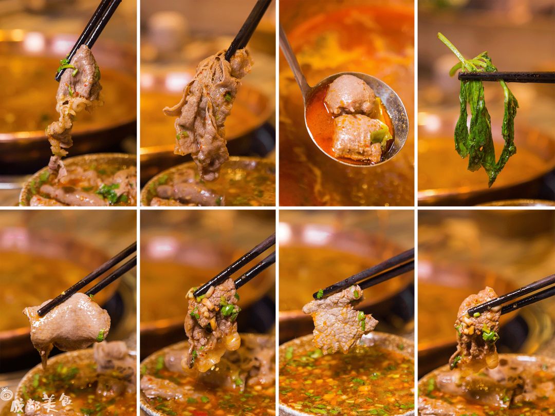 作为成都唯一一家铜瓢牛肉锅肯定首选点大理红锅,不是吃以往火锅的那种红油滋味。再配以特制的蘸碟,烫牛肉和薄荷都是如记忆中那般美味。
