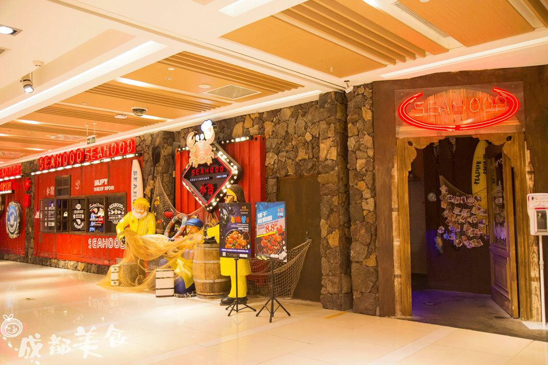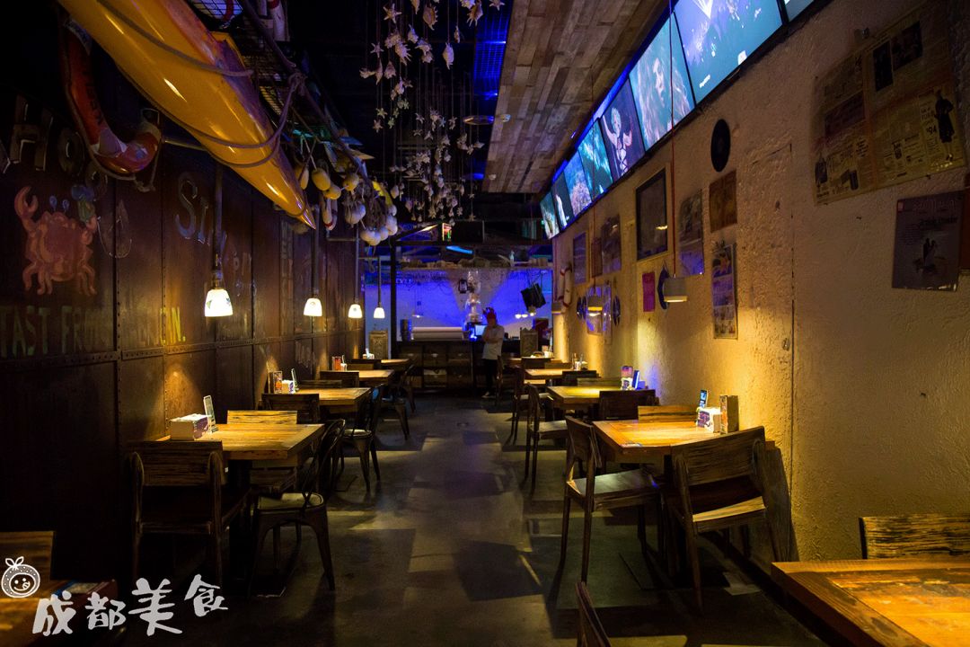 可以说是成都最IN海鲜店,夜店风环境,以前海鲜都是按桶算,倒在桌子上铺成一片。