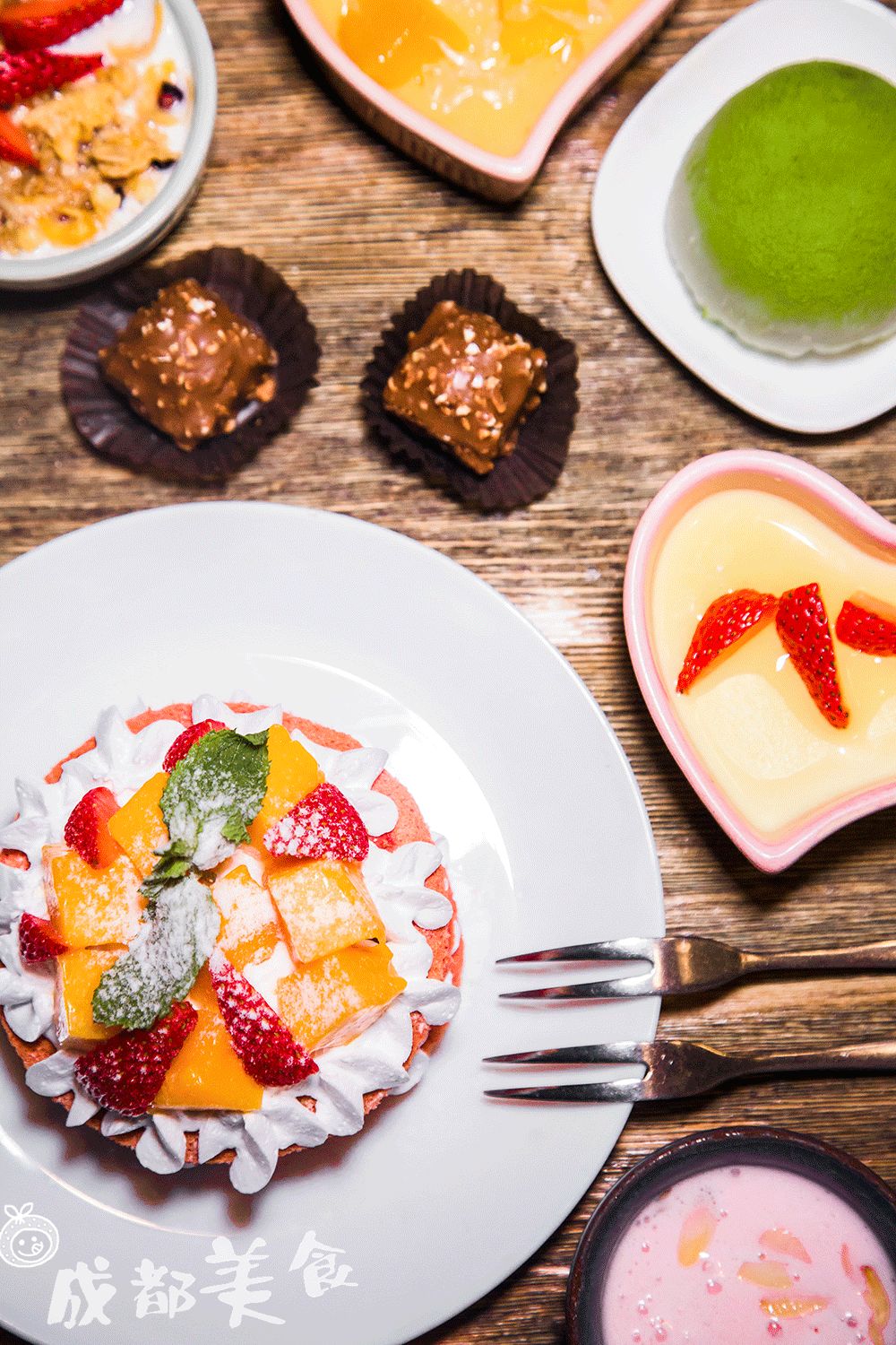 以前的“满汉全席”变成了现在的“秘密花园”,红丝绒裸蛋糕、杨枝甘露、草莓布丁,抹茶大福等等,比满汉全席还丰富。
