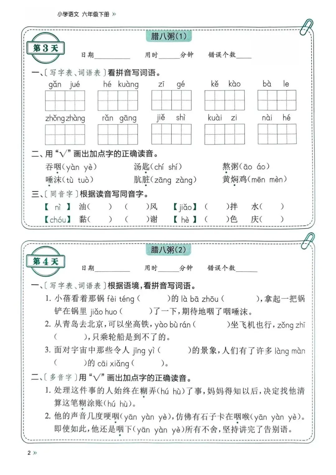 26春六年级语文下册《基础知识一课一练》电子版可下载打印