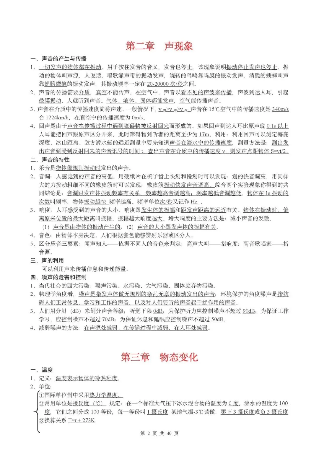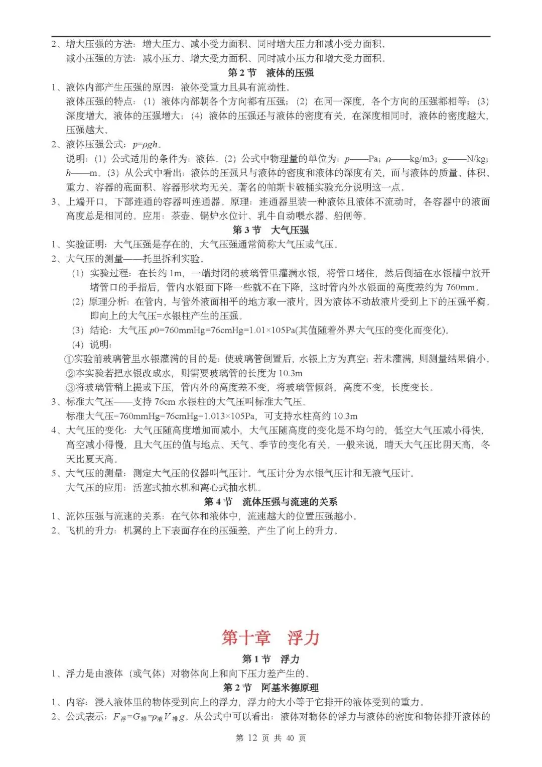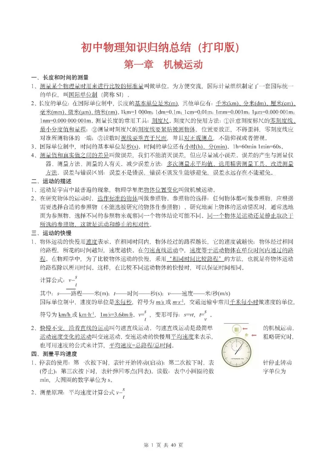 (超详)初中物理知识点归纳汇总(可打印)