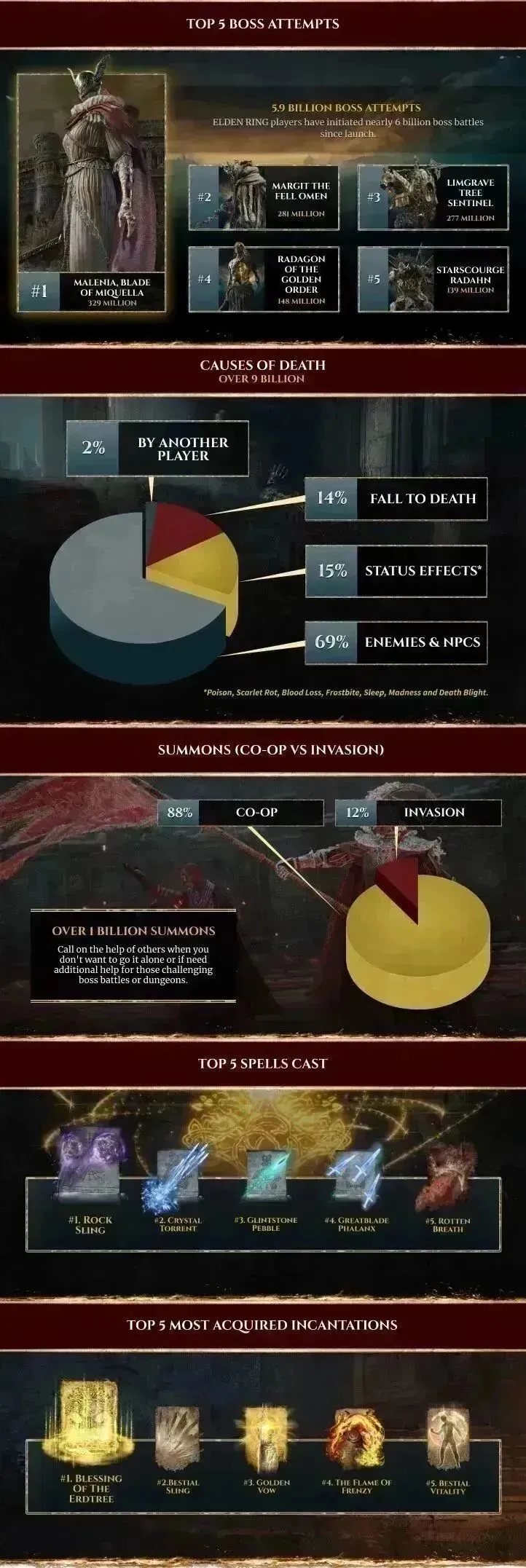 5.《艾尔登法环》公布游戏统计数据 90亿人次死亡