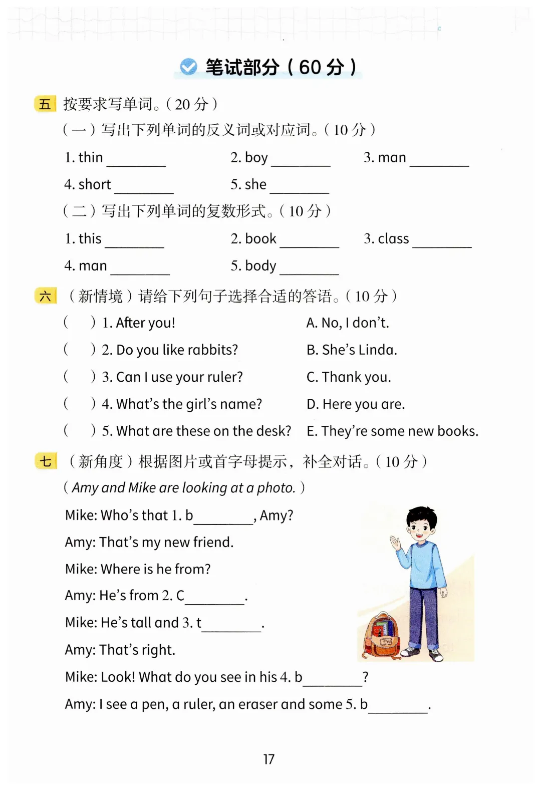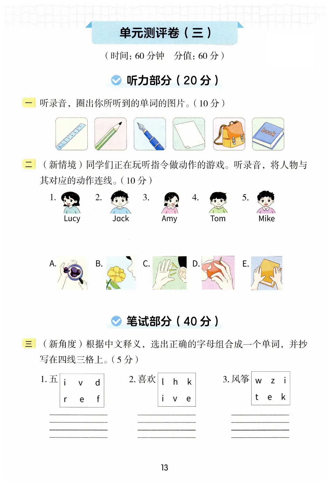 三年级下册英语同步练习+测评卷(电子版可打印)