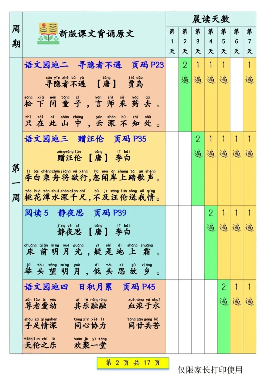 一年级(下)语文 预习课文背诵337法