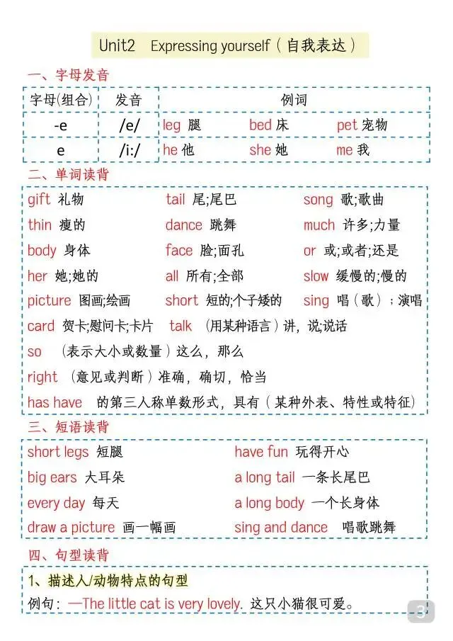 这份人教版PEP三年级(下)英语1-6单元知识点总结超实用!它按单元梳理了字母发音、核心单词、常用短语、重点句型和语法考点,从结识朋友到数字运用,覆盖全册核心内容,句型配公式+例句,语法有表格+解析,条理清晰,读背方便,是三年级孩子同步学习、复习巩固的优质资料,帮孩子轻松吃透课本重点,夯实英语基础~家长抓紧打印出来吧!