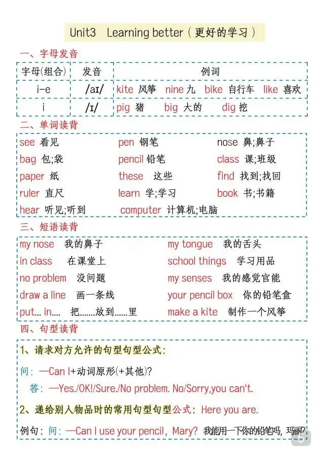 三年级下英语《1-6单元知识点》,电子版可打印
