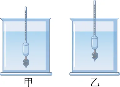 6. 同一密度计先后放在密度为ρ甲、ρ乙的液体中,静止时所处位置如图所示,密度计在两种液体中所受浮力分别为F甲浮、F乙浮。下列选项中正确的是( )