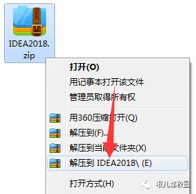 1.鼠标右击软件压缩包,选择“解压到 IDEA2018”