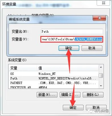 15.在已有的变量值最后面加上“;%JAVA_HOME%\bin”,然后点击“确定”