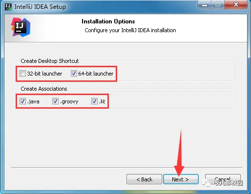 25.根据电脑系统类型,在“Create Desktop Shortcut”栏目下选择“32-bit launcher”或者“64-bit launcher”,“Create Associations”栏目下面的全部勾选,然后点击“Next”
