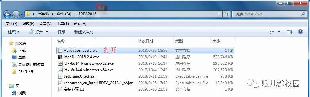 41.打开“IDEA2018”文件夹,打开记事本文档“Activation code”