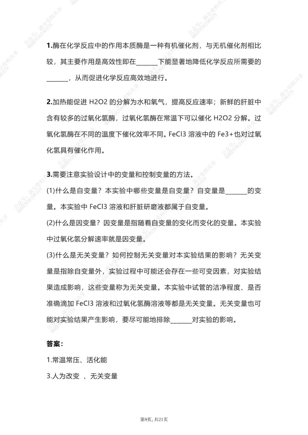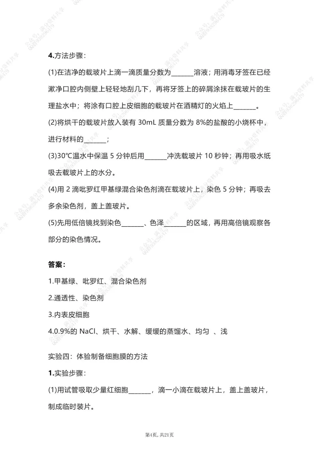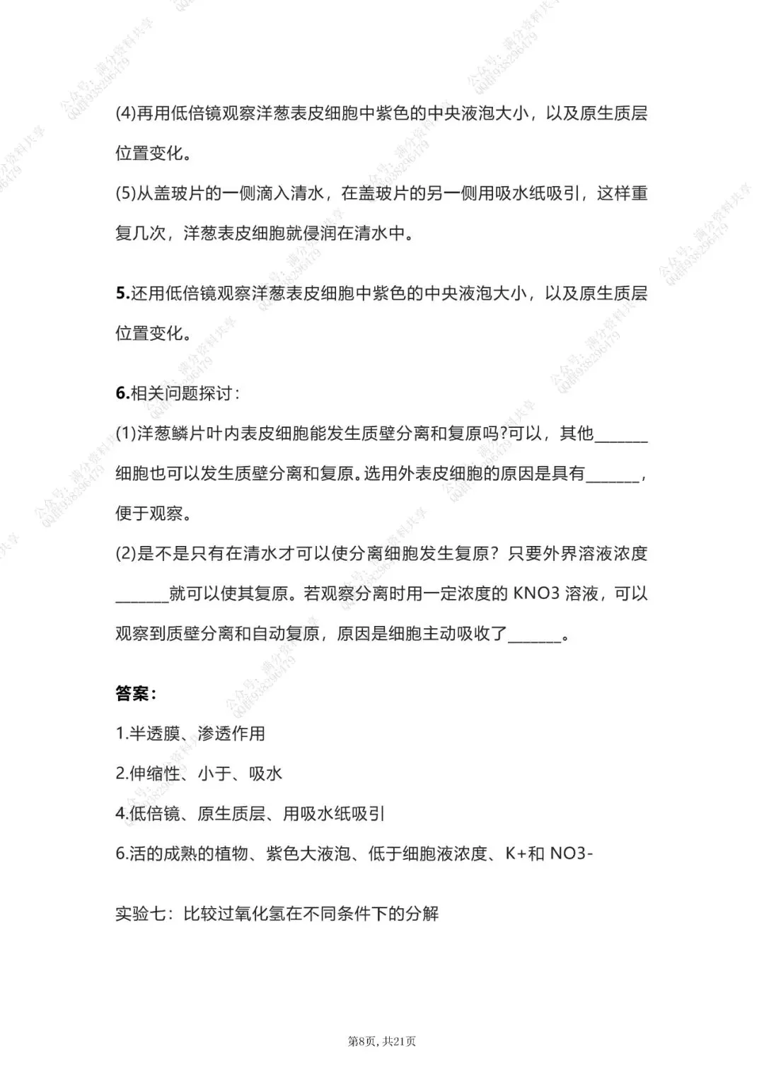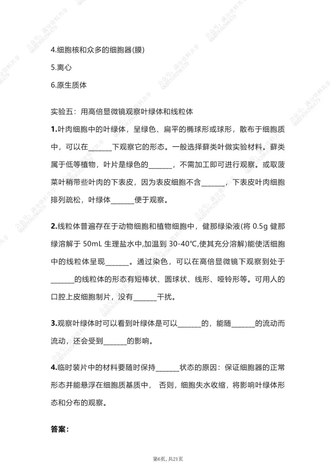 高中生物20个实验重点知识汇总(pdf分享) 点击图片可观看高清版,文末有获取打印版方式 (完整版21页,部分展示) 领取完整电子版: ①:点一点右下角的“赞”和“在看”,感谢! ②:点击“关注”回复“高中资料”获取资料 点击下方“公众号”关注,可以进入主页哦!