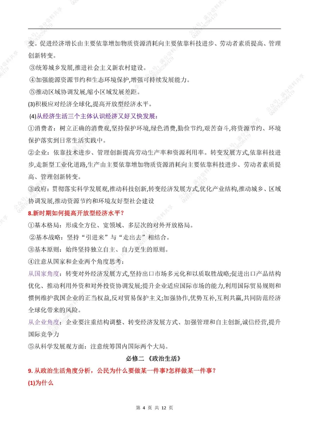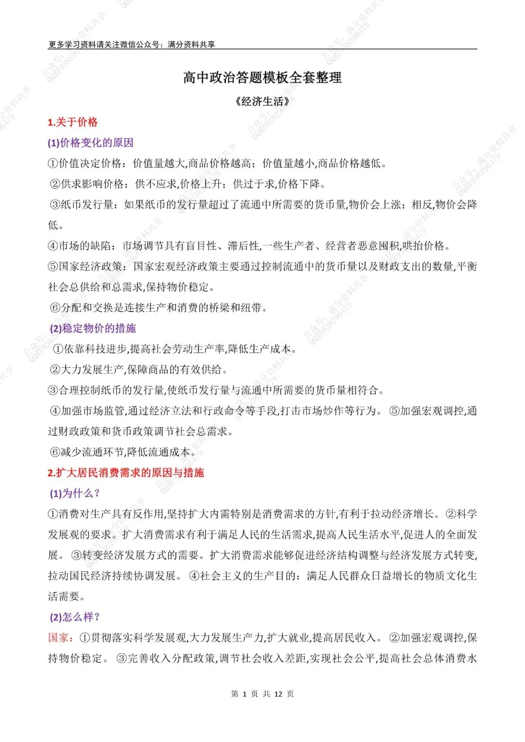 高中政治答题模板全套整理(pdf分享) 点击图片可观看高清版,文末有获取打印版方式 (完整版12页,部分展示) 领取完整电子版: ①:点一点右下角的“赞”和“在看”,感谢! ②:点击“关注”回复“高中资料”获取资料 点击下方“公众号”关注,可以进入主页哦!