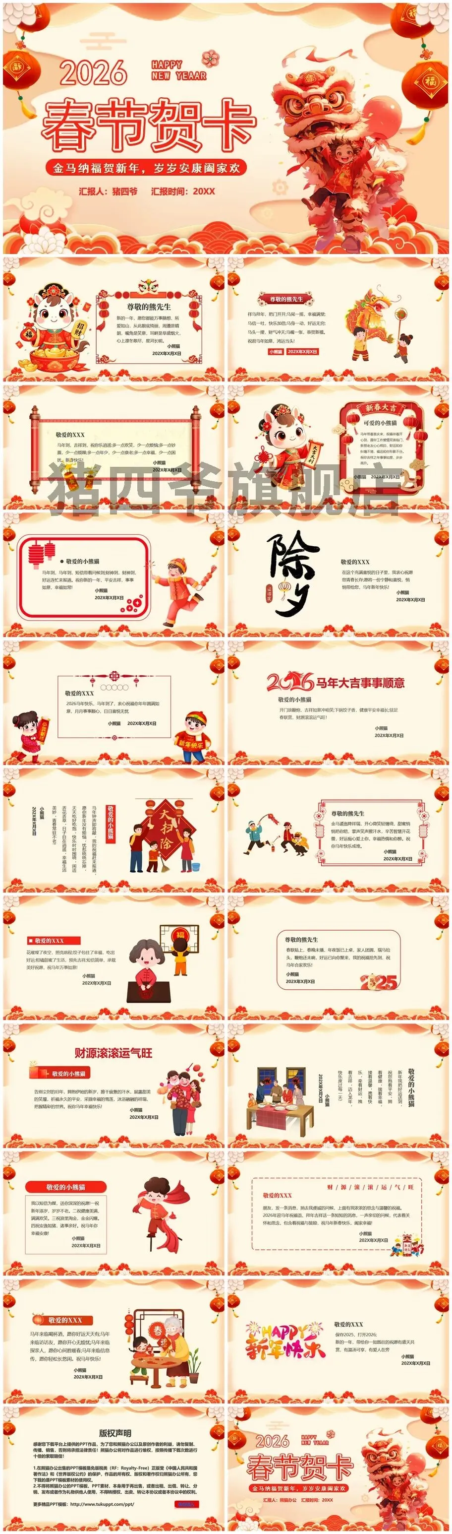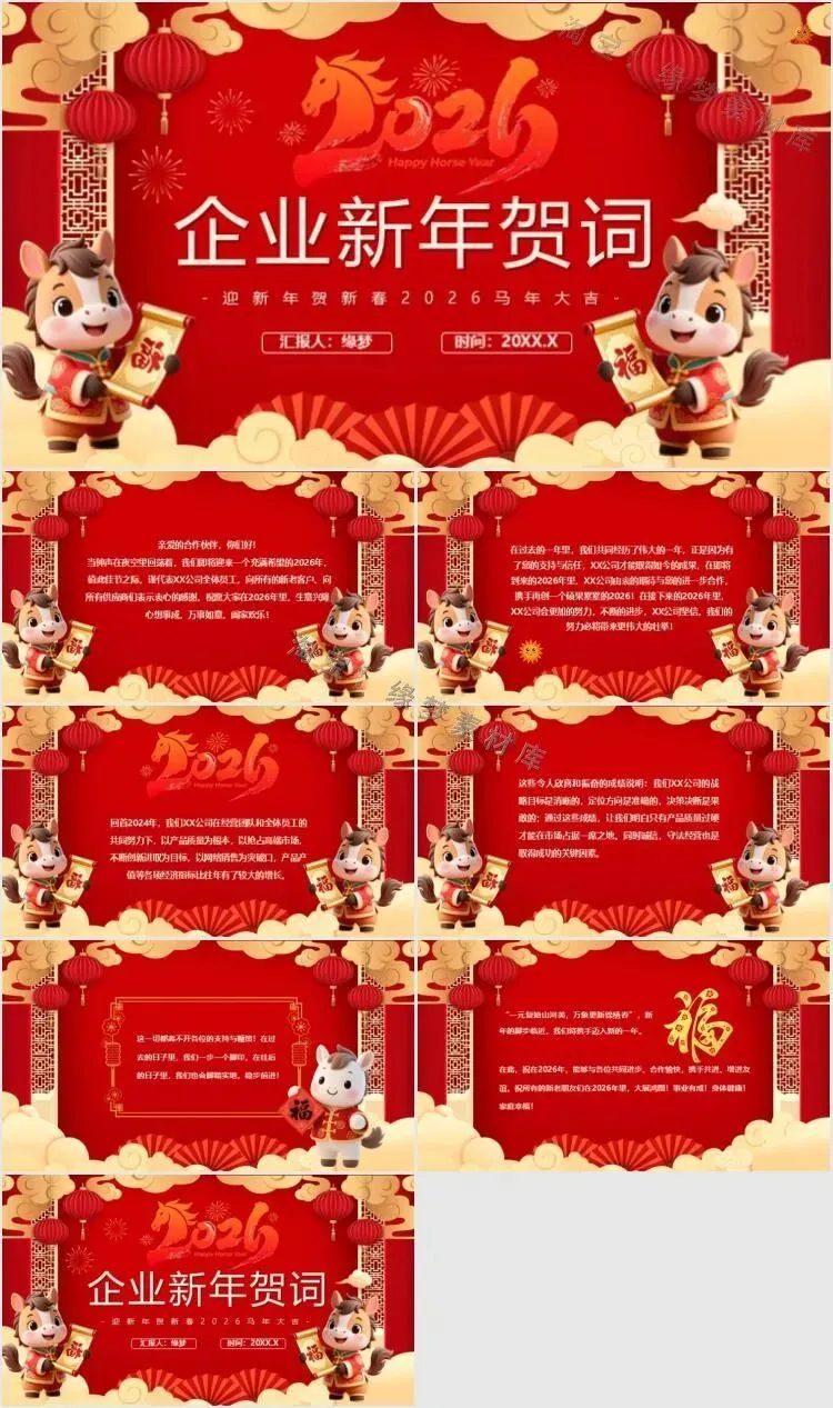 2026马年祝福贺卡模板(免费使用,可编辑,可打印)