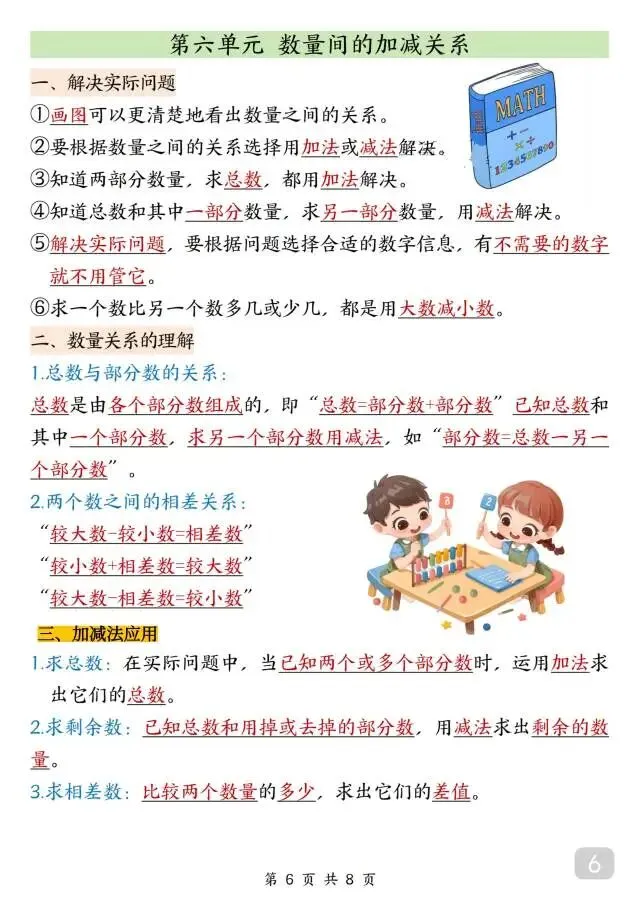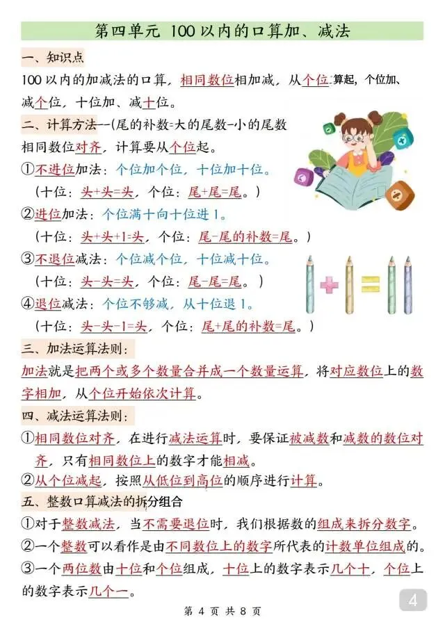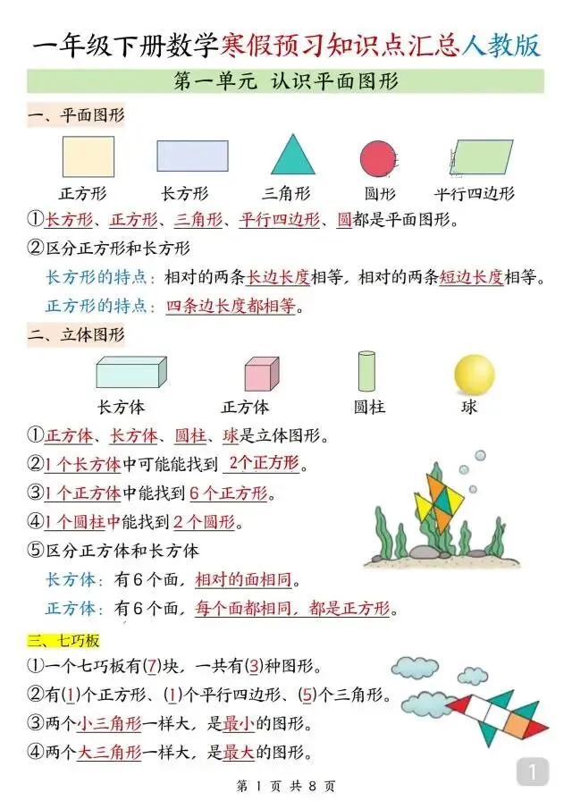 一年级下册数学《知识点汇总》人教版,电子版可打印