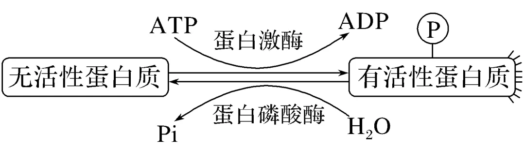 2.(2024·山东枣庄滕州质检)蛋白质的磷酸化与去磷酸化被比喻为一种分子开关,形成有活性的蛋白质是一个磷酸化的过程,即“开”,形成无活性的蛋白质是一个去磷酸化的过程,即“关”,机制如下图所示。下列有关叙述正确的是( )